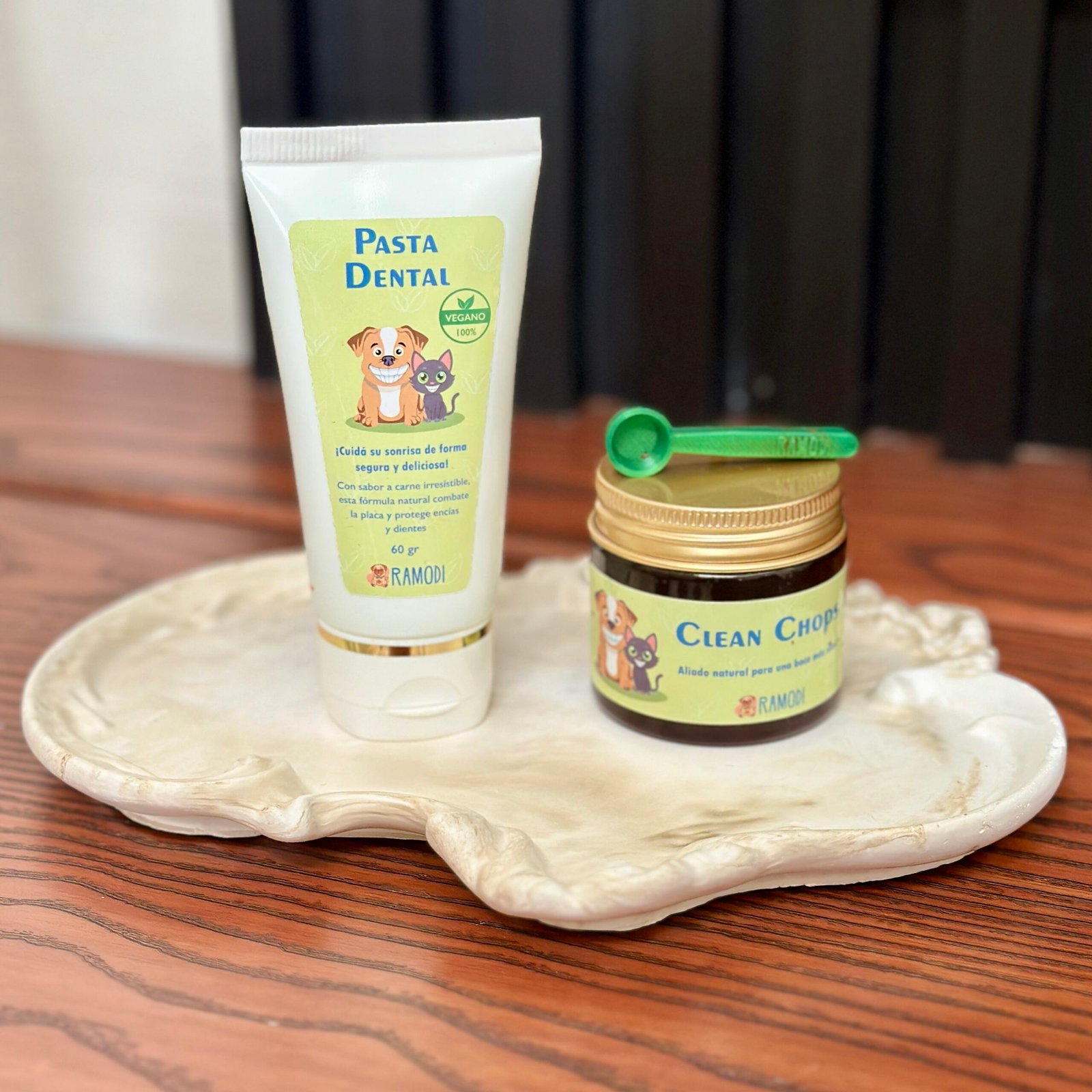 🪥 Pasta Dental Ramodi (60 g): fórmula vegana con sabor a carne, aloe vera, aceite de coco y bicarbonato de sodio. Ayuda a combatir la placa, proteger encías y dejar el aliento más fresco. Sin enjuague.